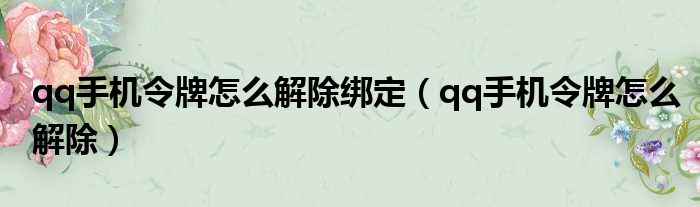 qq手机令牌怎么解除绑定(qq手机令牌怎么解除)
