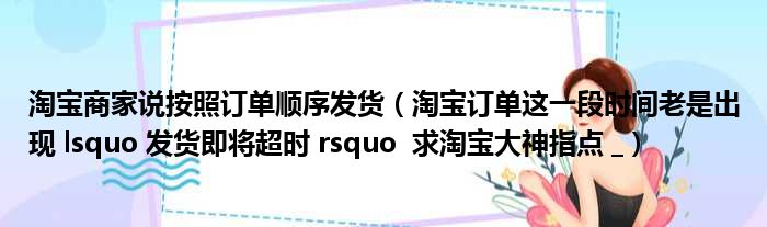 淘宝商家说按照订单顺序发货(淘宝订单这一段时间老是出现 lsquo 发货即将超时 rsquo 求淘宝大神指点 _)