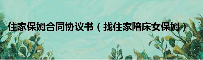大家好,小东方来为大家解答以上的问题。住家保姆合同协议书,找住家陪床女保姆这个很多人还不知道,现在让我们一起来看看吧!