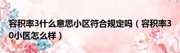 容积率3什么意思小区符合规定吗(容积率3 0小区怎么样)