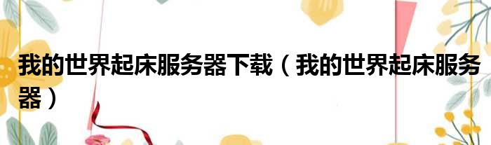 大家好,小东方来为大家解答以上的问题。我的世界起床服务器下载,我的世界起床服务器这个很多人还不知道,现在让我们一起来看看吧!