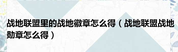 战地联盟里的战地徽章怎么得(战地联盟战地勋章怎么得)