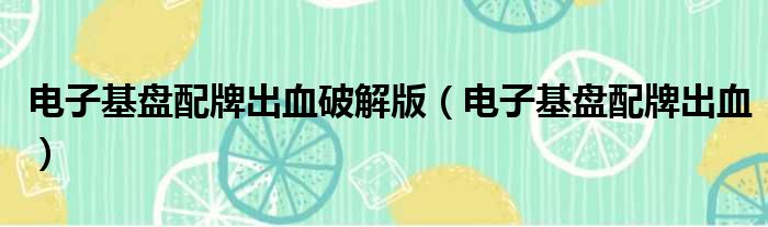 电子基盘配牌出血破解版(电子基盘配牌出血)