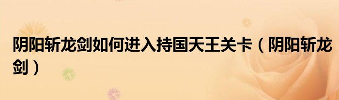 阴阳斩龙剑如何进入持国天王关卡(阴阳斩龙剑)