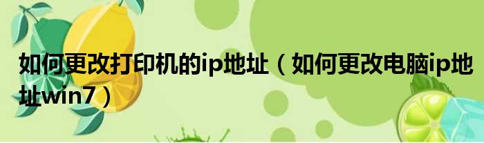 如何更改打印机的ip地址(如何更改电脑ip地址win7)