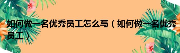 如何做一名优秀员工怎么写(如何做一名优秀员工)