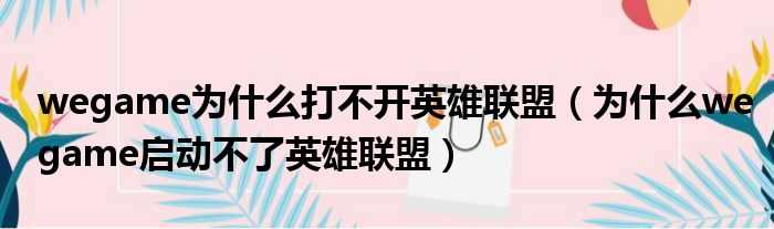 wegame为什么打不开英雄联盟(为什么wegame启动不了英雄联盟)
