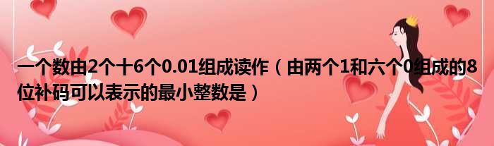 大家好,小东方来为大家解答以上的问题。一个数由2个十6个0.01组成读作,由两个1和六个0组成的8位补码可以表示的最小整数是这个很多人还不知道,现在让我们一起来看看吧!