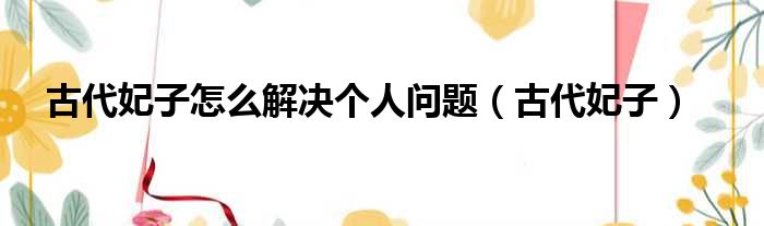 古代妃子怎么解决个人问题(古代妃子)