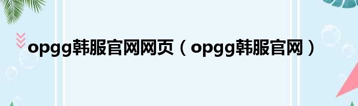 大家好,小东方来为大家解答以上的问题。opgg韩服官网网页,opgg韩服官网这个很多人还不知道,现在让我们一起来看看吧!