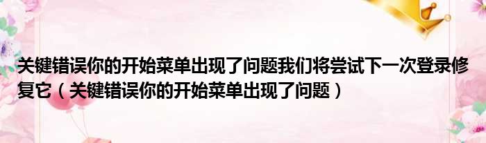 关键错误你的开始菜单出现了问题我们将尝试下一次登录修复它(关键错误你的开始菜单出现了问题)