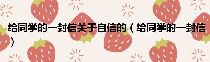 大家好,小东方来为大家解答以上的问题。给同学的一封信关于自信的,给同学的一封信这个很多人还不知道,现在让我们一起来看看吧!