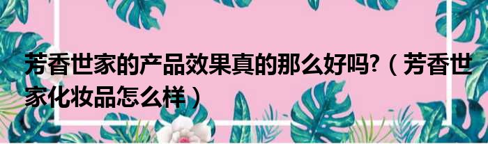 芳香世家的产品效果真的那么好吗?(芳香世家化妆品怎么样)
