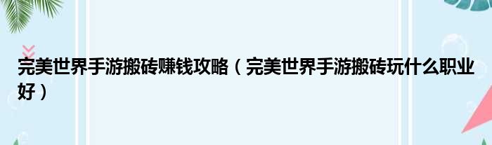 完美世界手游搬砖赚钱攻略(完美世界手游搬砖玩什么职业好)