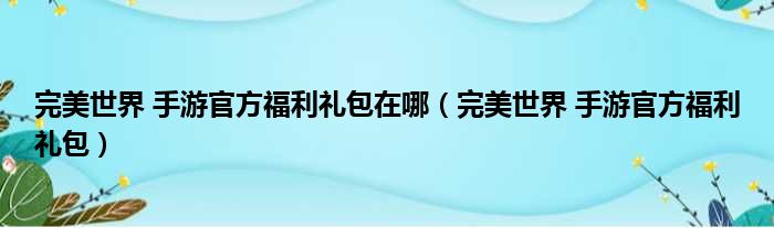完美世界 手游官方福利礼包在哪(完美世界 手游官方福利礼包)