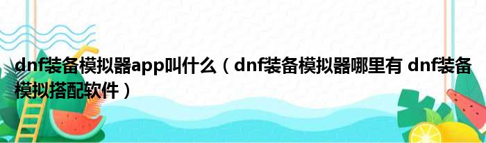 dnf装备模拟器app叫什么(dnf装备模拟器哪里有 dnf装备模拟搭配软件)