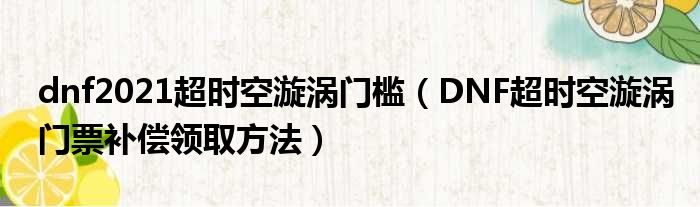 dnf2021超时空漩涡门槛(DNF超时空漩涡门票补偿领取方法)