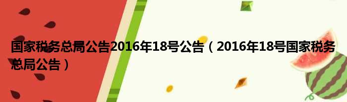 国家税务总局公告2016年18号公告(2016年18号国家税务总局公告)