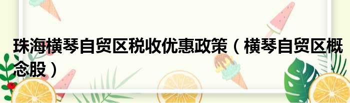 珠海横琴自贸区税收优惠政策(横琴自贸区概念股)