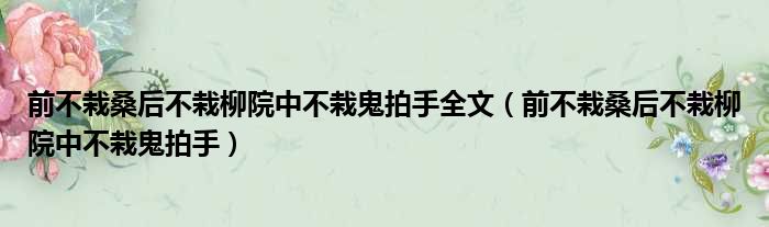 前不栽桑后不栽柳院中不栽鬼拍手全文(前不栽桑后不栽柳院中不栽鬼拍手)