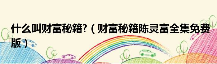 什么叫财富秘籍?(财富秘籍陈灵富全集免费版)