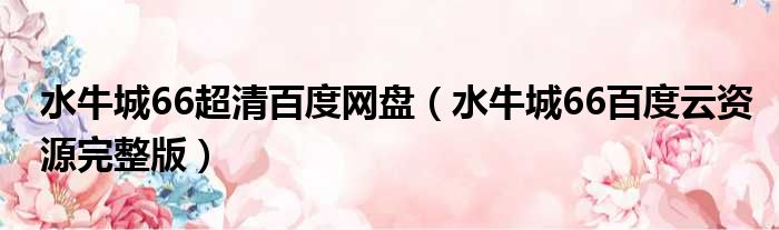 水牛城66超清百度网盘(水牛城66百度云资源完整版)