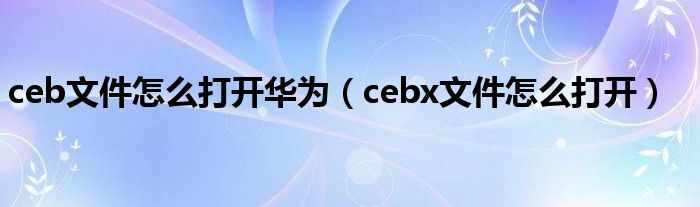 ceb文件怎么打开华为(cebx文件怎么打开)