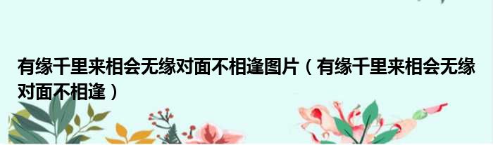 有缘千里来相会无缘对面不相逢图片(有缘千里来相会无缘对面不相逢)