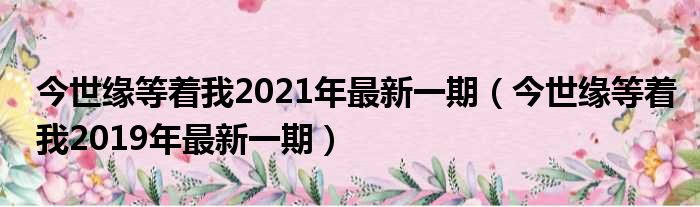 今世缘等着我2021年最新一期(今世缘等着我2019年最新一期)