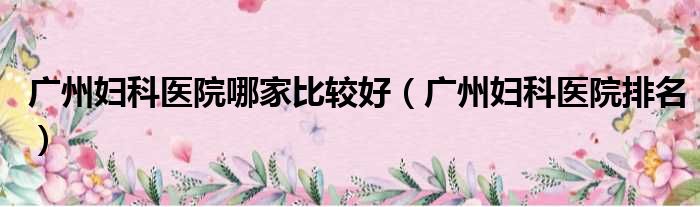 广州妇科医院哪家比较好(广州妇科医院排名)