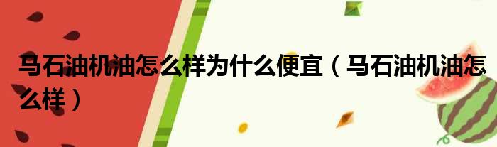 马石油机油怎么样为什么便宜(马石油机油怎么样)
