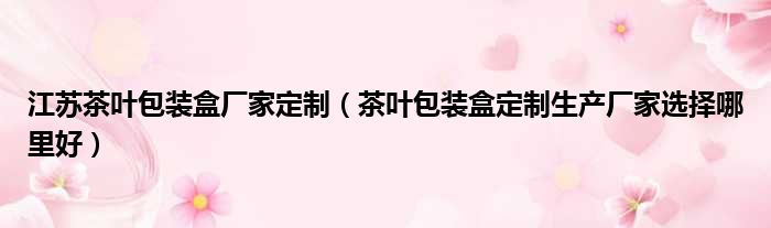 江苏茶叶包装盒厂家定制(茶叶包装盒定制生产厂家选择哪里好)