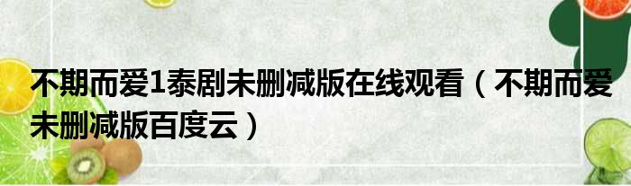 不期而爱1泰剧未删减版在线观看(不期而爱未删减版百度云)