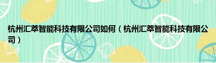 杭州汇萃智能科技有限公司如何(杭州汇萃智能科技有限公司)