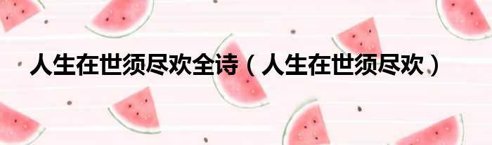大家好,小东方来为大家解答以上的问题。人生在世须尽欢全诗,人生在世须尽欢这个很多人还不知道,现在让我们一起来看看吧!