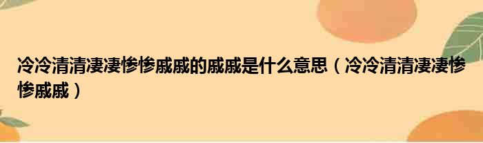冷冷清清凄凄惨惨戚戚的戚戚是什么意思(冷冷清清凄凄惨惨戚戚)