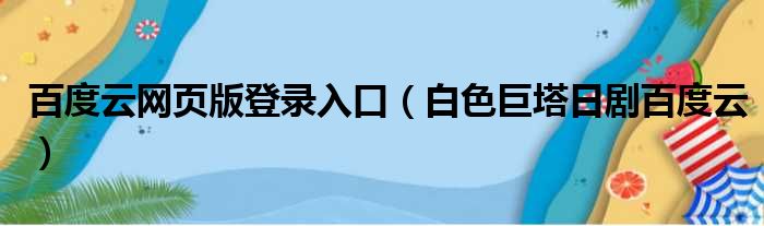大家好,小东方来为大家解答以上的问题。百度云网页版登录入口,白色巨塔日剧百度云这个很多人还不知道,现在让我们一起来看看吧!