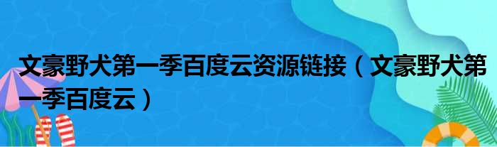 文豪野犬第一季百度云资源链接(文豪野犬第一季百度云)