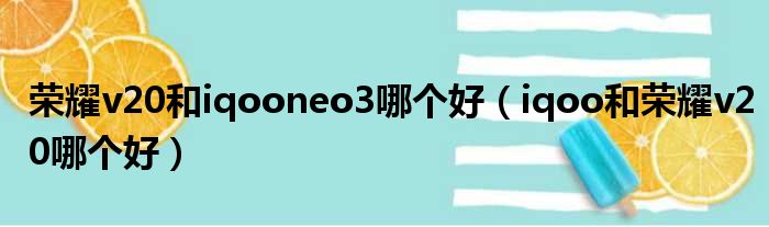 荣耀v20和iqooneo3哪个好(iqoo和荣耀v20哪个好)