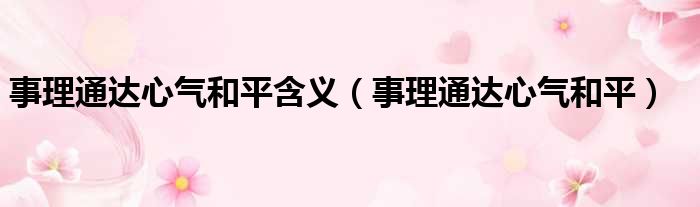 大家好,小东方来为大家解答以上的问题。事理通达心气和平含义,事理通达心气和平这个很多人还不知道,现在让我们一起来看看吧!