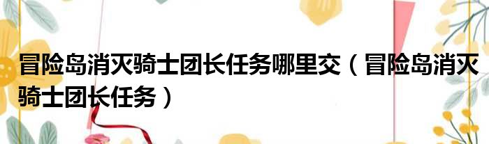 冒险岛消灭骑士团长任务哪里交(冒险岛消灭骑士团长任务)