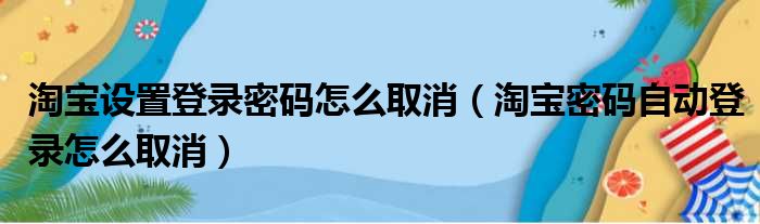 淘宝设置登录密码怎么取消(淘宝密码自动登录怎么取消)