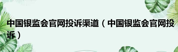 中国银监会官网投诉渠道(中国银监会官网投诉)