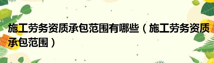 施工劳务资质承包范围有哪些(施工劳务资质承包范围)
