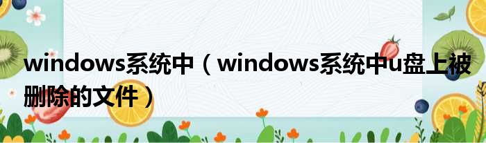 大家好,小东方来为大家解答以上的问题。windows系统中,windows系统中u盘上被删除的文件这个很多人还不知道,现在让我们一起来看看吧!