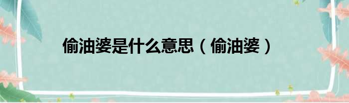大家好,小东方来为大家解答以上的问题。偷油婆是什么意思,偷油婆这个很多人还不知道,现在让我们一起来看看吧!