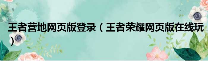 王者营地网页版登录(王者荣耀网页版在线玩)