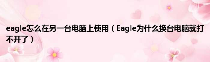 eagle怎么在另一台电脑上使用(Eagle为什么换台电脑就打不开了)