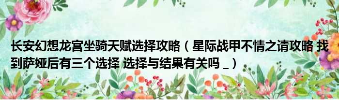 长安幻想龙宫坐骑天赋选择攻略(星际战甲不情之请攻略 找到萨娅后有三个选择 选择与结果有关吗 _)