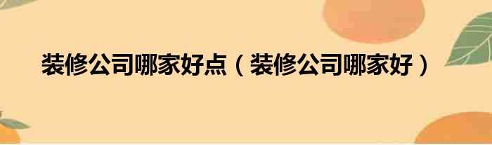 装修公司哪家好点(装修公司哪家好)